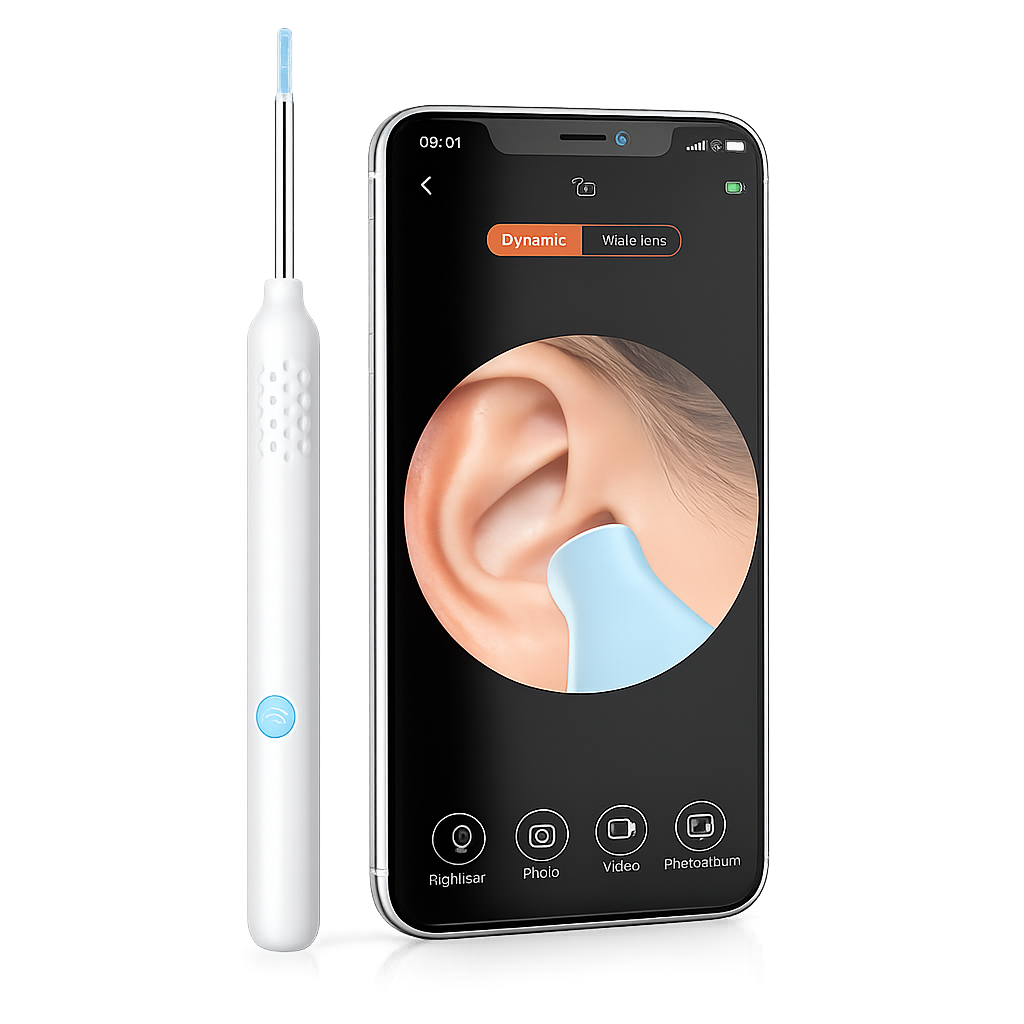 Camear to idealne narzędzie dla wszystkich, którzy szukają nowoczesnego, precyzyjnego i łatwego w użyciu urządzenia do czyszczenia uszu! Jego obsługa jest dziecinnie prosta. Dzięki wbudowanej kamerze o wysokiej rozdzielczości możesz zobaczyć wnętrze swojego ucha w czasie rzeczywistym bezpośrednio na swoim smartfonie, co zapewnia bezpieczne i perfekcyjne czyszczenie. Miękka silikonowa końcówka zapewnia optymalny komfort i zapobiega wszelkim podrażnieniom. Niezależnie od tego, czy jest to do użytku osobistego, czy rodzinnego, Camear zapewnia praktyczne, higieniczne i całkowicie bezpieczne doświadczenie.